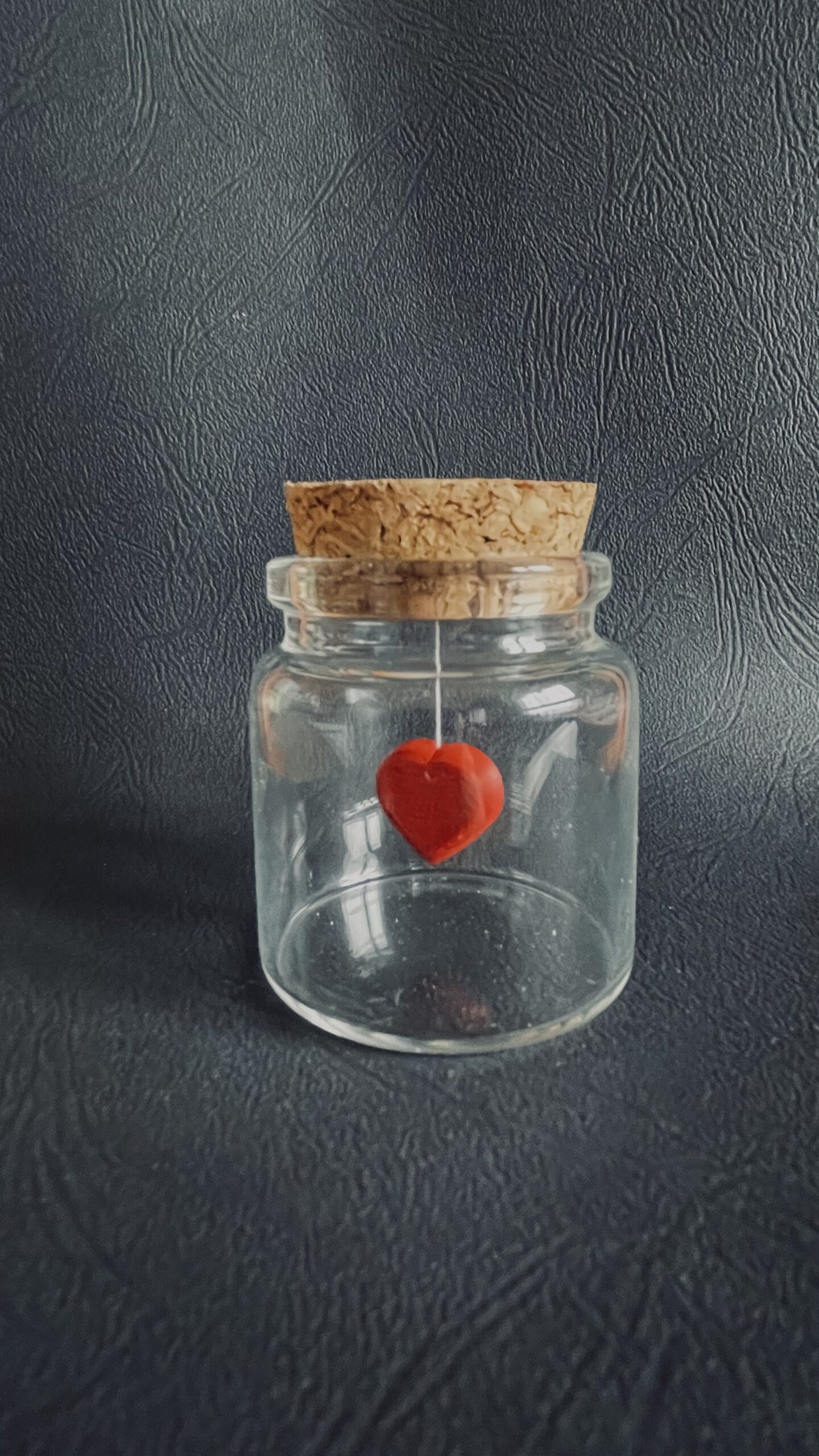 Bocal en verre et bouchon en liège. Coeur en impression 3D